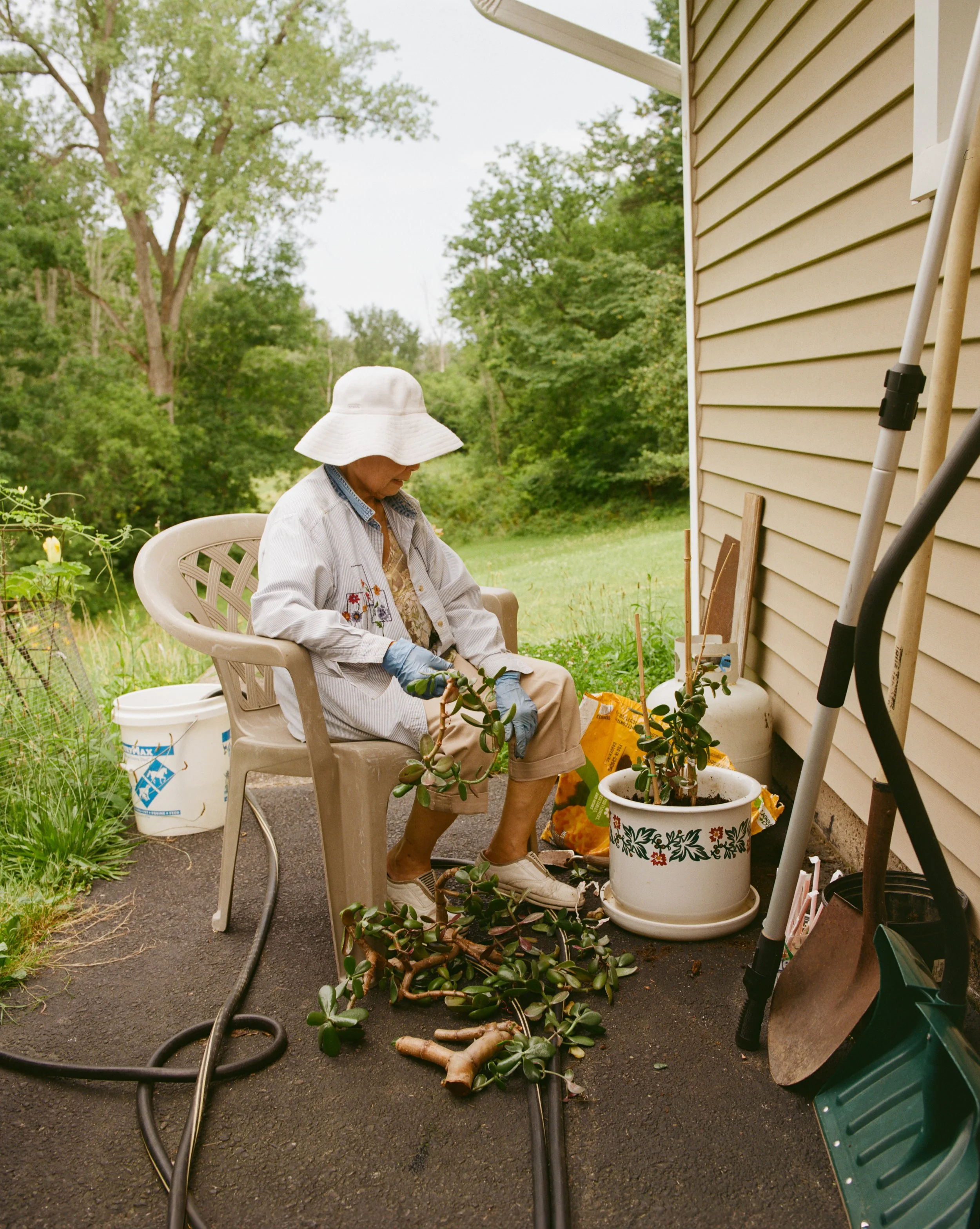 Lok yeay tending to her plants in the front yard. She chose to paint her house and shutters the same as my mother’s house in Rhode Island.